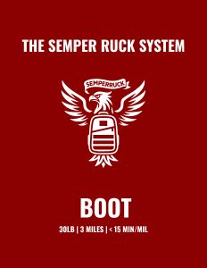 Completion of Boot means you can ruck three miles with thirty pounds at a controlled, repeatable pace without breakdown. Load increases, distance extends, pace starts to matter, and recovery becomes deliberate instead of accidental. This phase isn’t about intensity or heroics. It’s controlled work repeated until it holds. Boot exists to prepare your body and habits for sustained effort, not short bursts.